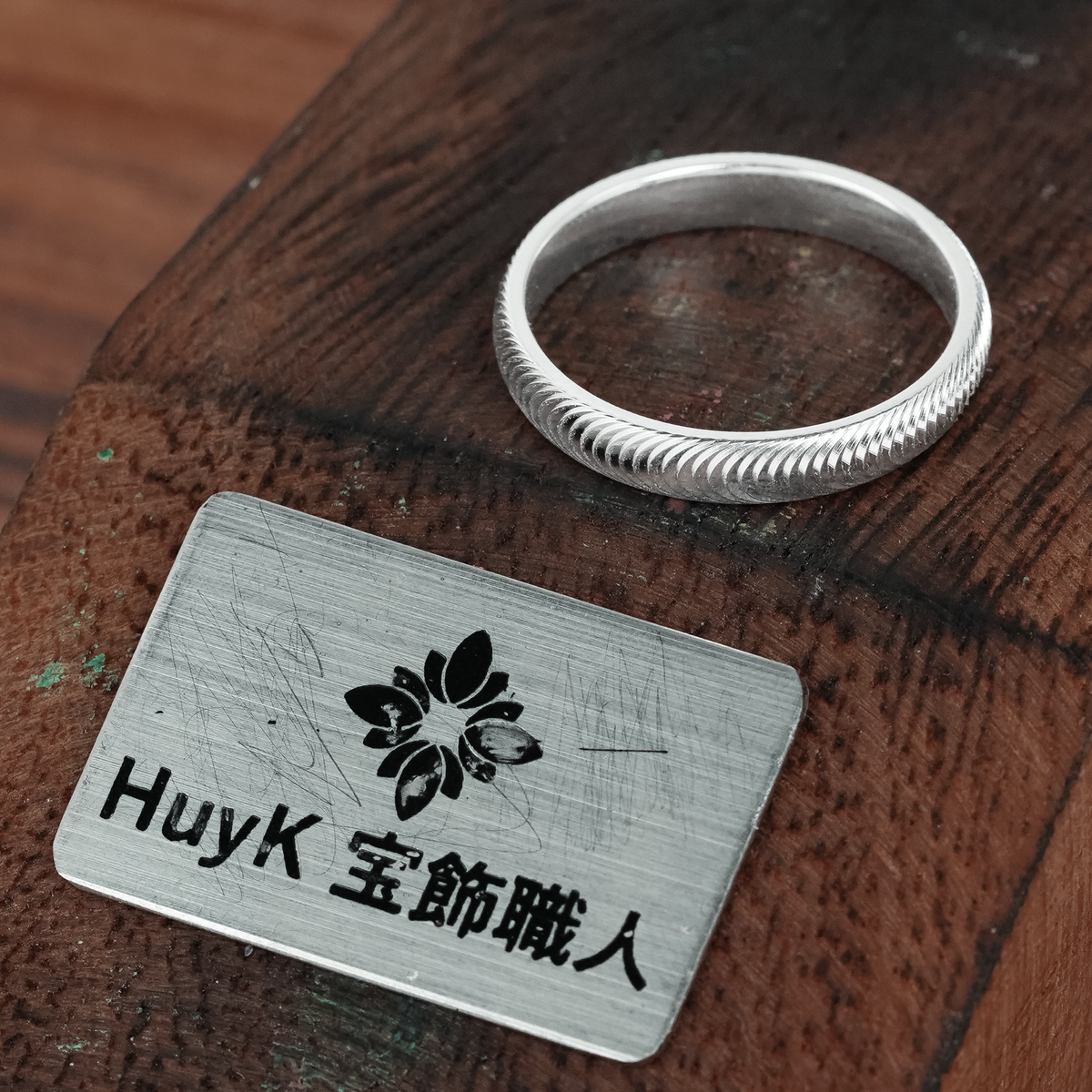 Dengan lebar 3.8mm yang proporsional, cincin ini didekorasi dengan pola mengalir yang diukir halus, memberikan rasa pas dan nyaman saat dikenakan.