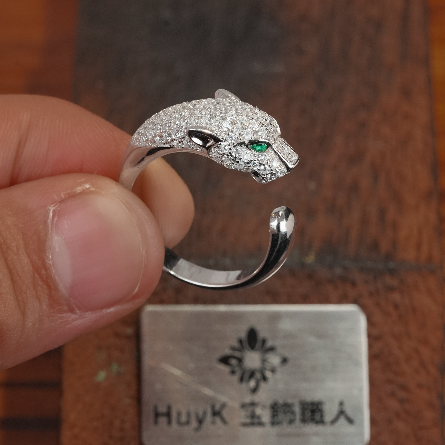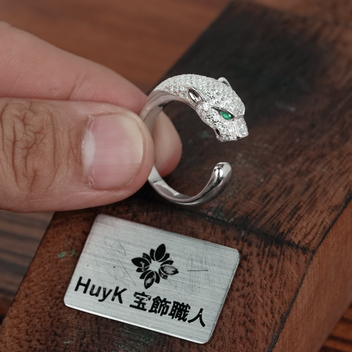 Terinspirasi dari sosok panther (macan tutul) , cincin ini menghadirkan desain yang memadukan kekuatan, aksi, dan kecerdasan dalam satu tampilan yang berkarakter.