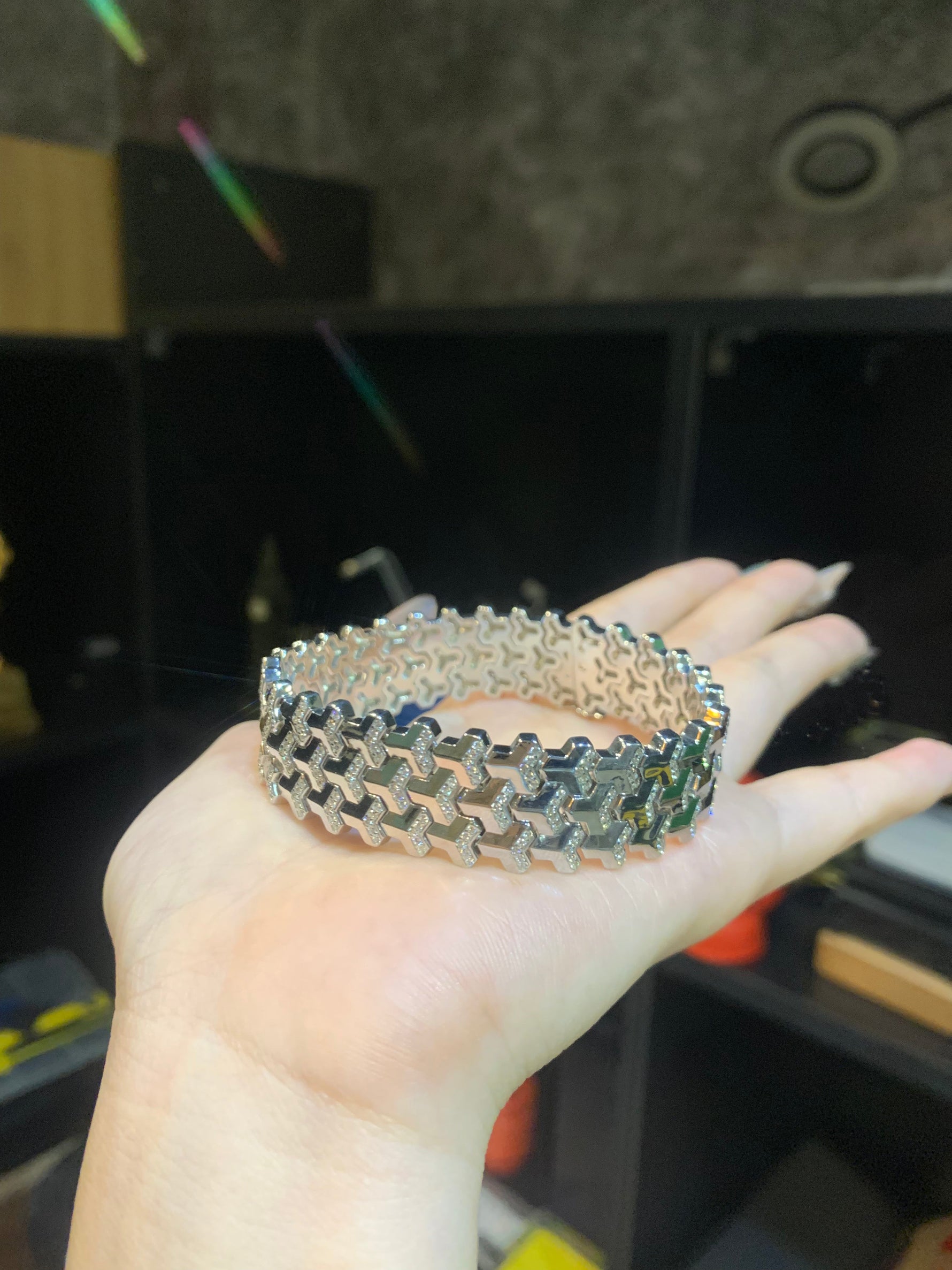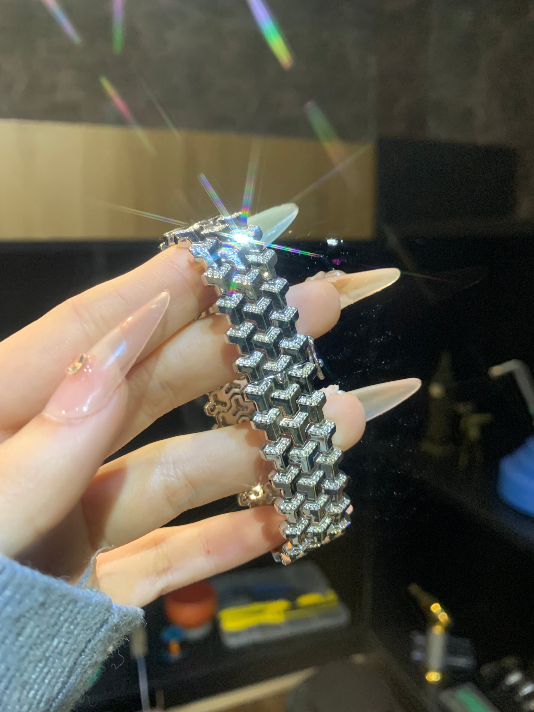 แต่ละชิ้นของกำไลถูกประดับด้วยหิน CZ อย่างประณีต สะท้อนแสงอย่างละเอียด เพิ่มความโดดเด่นและยกระดับความพรีเมียมของผลิตภัณฑ์
